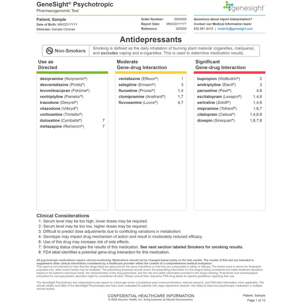 e GeneSight Psychotropic test is a genetic test that shows your healthcare provider how your genes may affect medication outcomes.